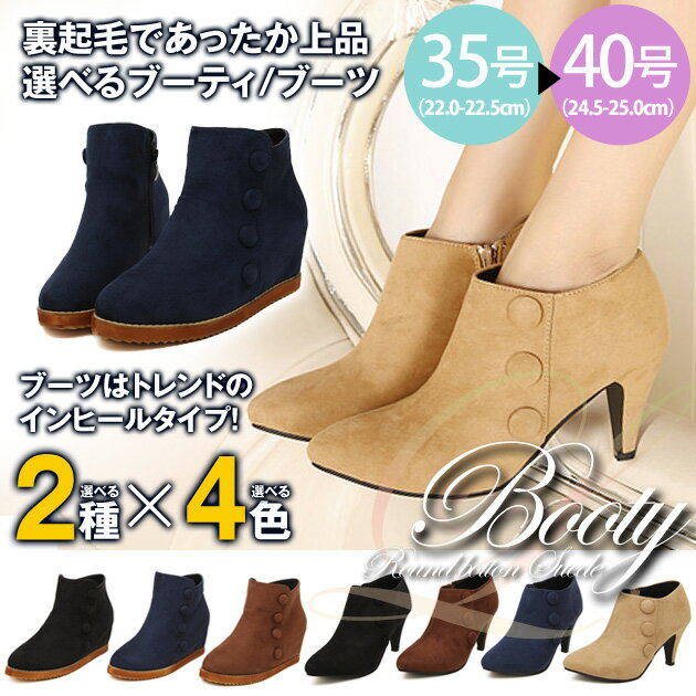 レディース 靴 スエードブーツ ブーティー 8.0cmヒール ボタンデザイン インヒール ショートブーツ 送料無料