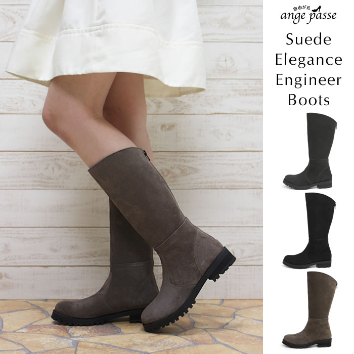 【期間限定お買い得】【送料無料】スエードエレガンスエンジニアブーツ!スリムなフォルムで超美脚。厚みのある牛革スエードを使用しました。【自由が丘ange passe】P25Jan15![]()