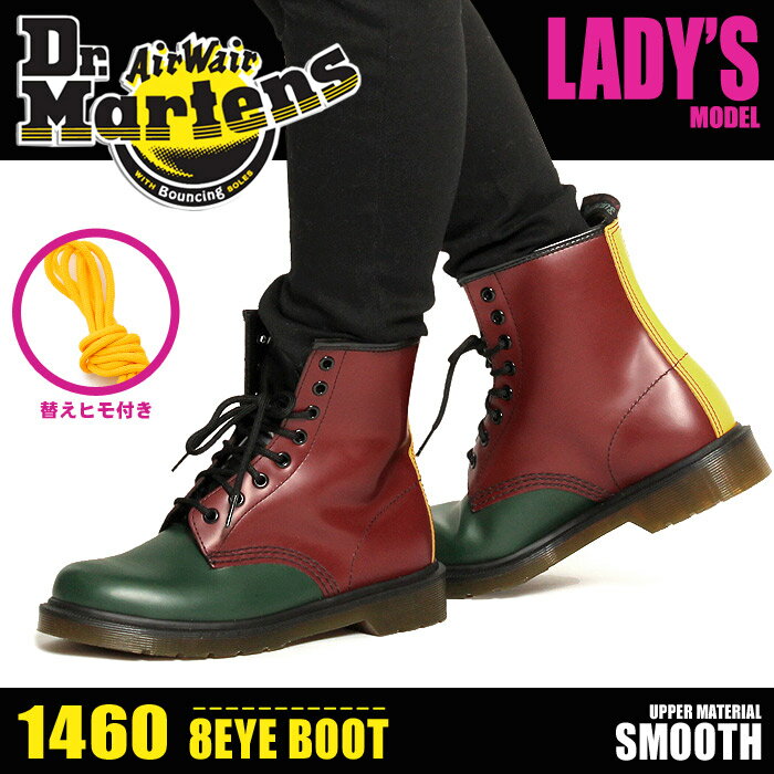 送料無料 ドクターマーチン Dr.Martens 1460 8ホール ブーツ グリーン × チェリーレッド(DR.MARTENS 16173310 1460)ドクターマーチン dr.martens レザー プレーントゥ 切り替え 8 EYE BOOTレディース(女性用)![]()