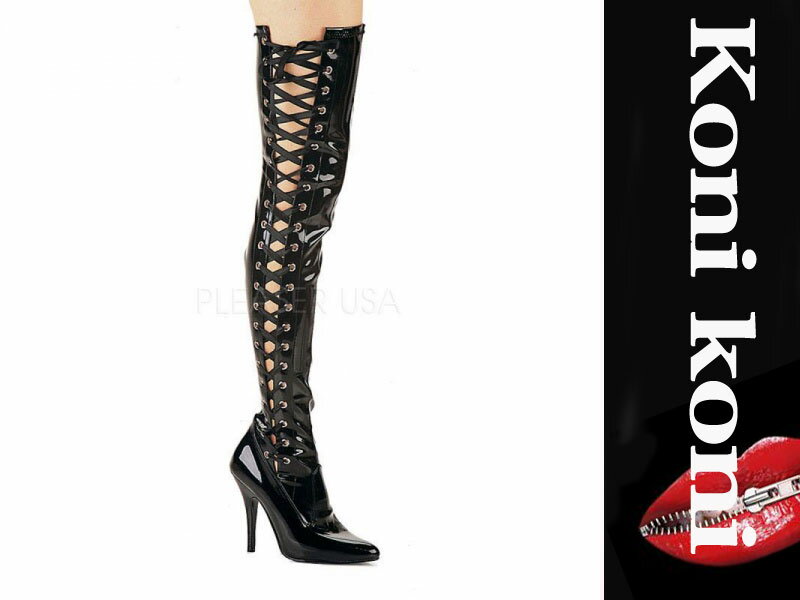 サイドレースアップブーツ /サイハイブーツ/ニーハイブーツ/エナメルブラック/合皮ブラック/編み上げ/美脚/足長/セクシー/フェティッシュ/ボンテージ/サイドジッパー付/【取り寄せ】品番SEDUCE-3050![]()