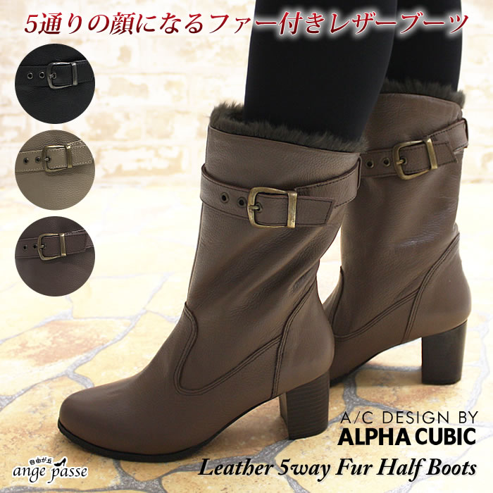 【期間限定お買い得価格】アルファキュービックレザー5wayファーハーフブーツ!本革を使用した上品なショートブーツ。筒を伸ばしても使え5通りの使い方ができます。【ALPHA CUBIC】【自由が丘ange passe】10P30Nov13![]()