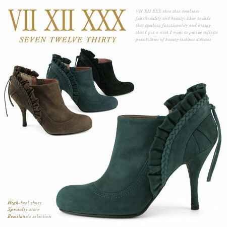 【アウトレット】セブントゥエルブサーティー ブーツ ブーティー バックフリル ラウンドトゥ ハイヒール ヒール10cm VII XII XXX (105150) 【送料無料】![]()