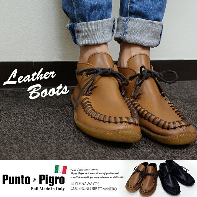 イタリア発レザーブーツブランド!【Punt Pigro by SECCHIARI MICHELE】(プントピグロ バイ セッキアーリミケーレ)#NAWAYOS素朴で少し土臭さを残したモカシンブーツ。/ショート丈/カジュアルブーツ/ブラック/ブラウン/クレープソール/レディース/![]()