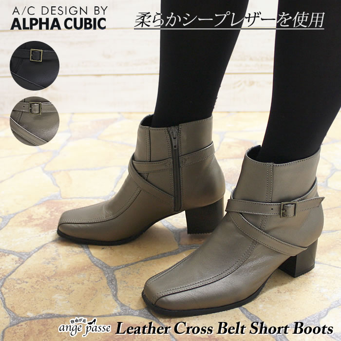 ※返品交換不可送料無料/アルファキュービックレザークロスベルトショートブーツ!シープレザーを使用したショート丈ブーツ。防菌抗臭、速乾素材こだわりの優しい履き心地。【コンフォートシューズ】【ALPHA CUBIC】【自由が丘ange passe】02P07Feb16![]()