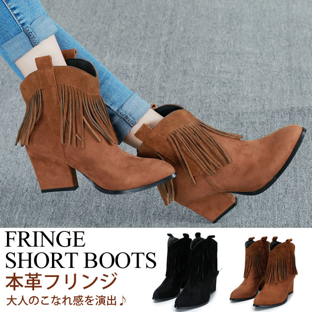 ブーツ フリンジ ウエスタン風 チャンキー ショート 靴