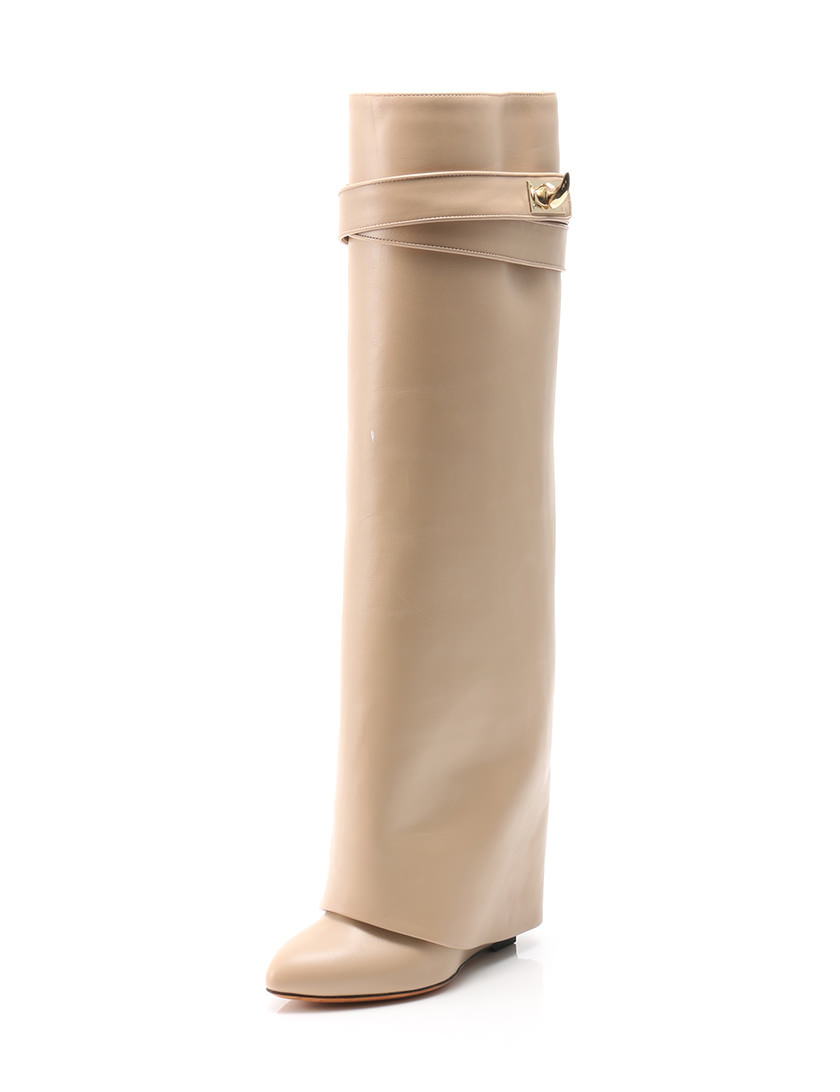 ジバンシィ GIVENCHY デザイン ロングブーツ シューズ 35 (21.5cm) レザー ベージュ レディース 【ベクトル 古着】【中古】 ブランド古着ベクトルプレミアム店