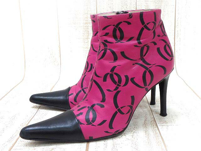 希少【CHANEL/シャネル】ココマーク サイドジップアップ レザー ショートブーツ 37 ピンク×ブラック レディース 【ベクトル 古着】【中古】 150404 古着 買取&販売 ベクトルイズム