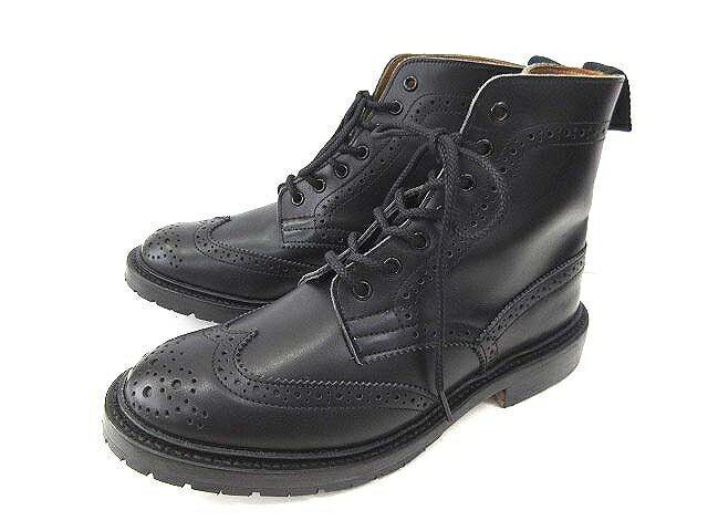 トリッカーズ TRICKER’S ショートブーツ レザー モールトン カントリー ウイングチップ メダリオン ボックスカーフ 黒 ブラック 5.5 約24.5cm L2508 A レディース