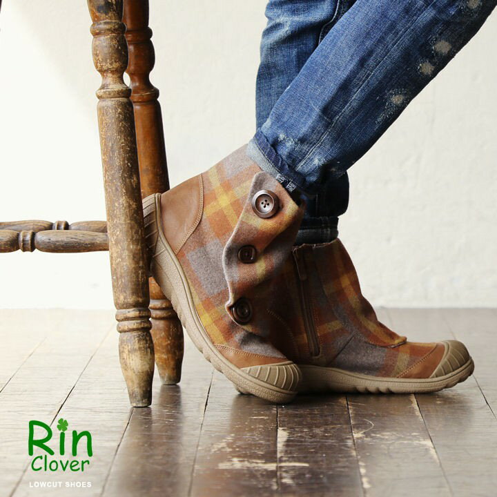 【新作特典ポイント10倍】【予約販売】【送料無料】 Rin Clover [リン・クローバー] ショートブーツ チェック柄 アクセントボタンデザイン インサイドジップ付き クッションインソール レディースブーツ レディースシューズ スニーカーブーツ![]()
