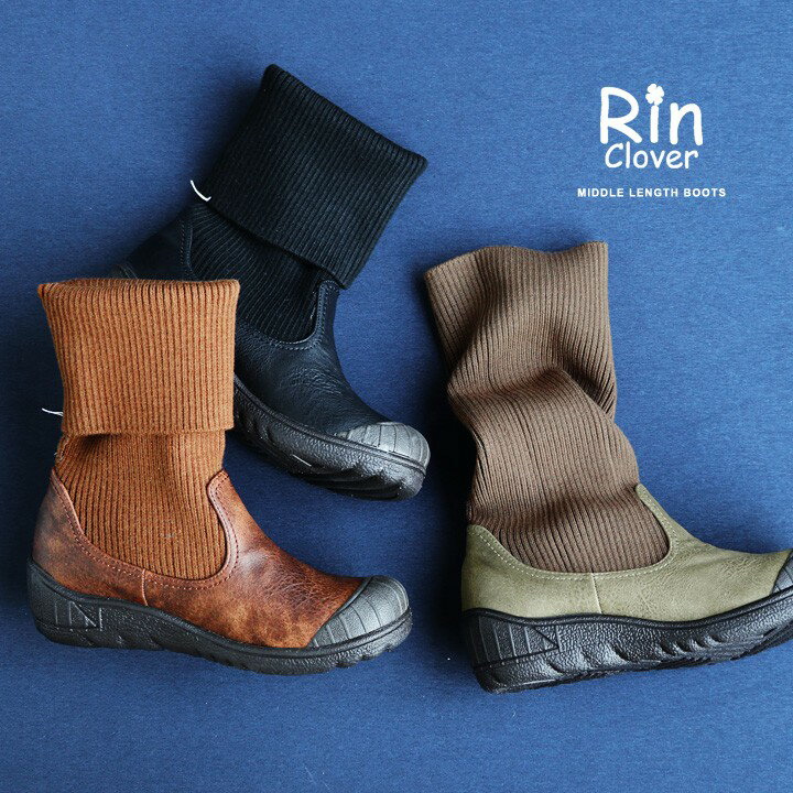 【新作特典ポイント10倍】【予約販売】【送料無料】 Rin Clover [リン・クローバー] ブーツ ミドル丈 ロング丈 リブニット × PUレザー 異素材切り替え でこぼこ アウトソール 厚底 レディース![]()