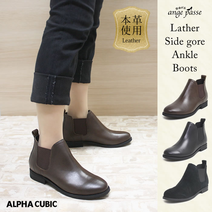 送料無料※返品交換不可 アルファキュービックALPHA CUBIC レザーサイドゴアアンクルブーツ レディース 靴 大人カジュアル 痛くない 秋冬 定番ベーシック 黒ブラック 楽 機能性 本革 コンフォート アンティーク 柔らかい 自由が丘ange passe![]()