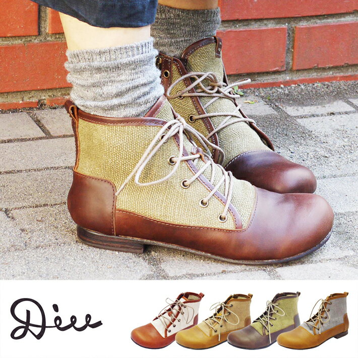 【Diuディウ公式SHOP】◆送料無料◆レザー キャンバス ショートブーツ◆本革◆疲れない フラット ソール◆ シンプル レディース レザー インソール オブリークショートブーツ コンフォート マニッシュ ナチュラル 編み上げ スエード ヒール 黒 革 大きいサイズ トゥ![]()