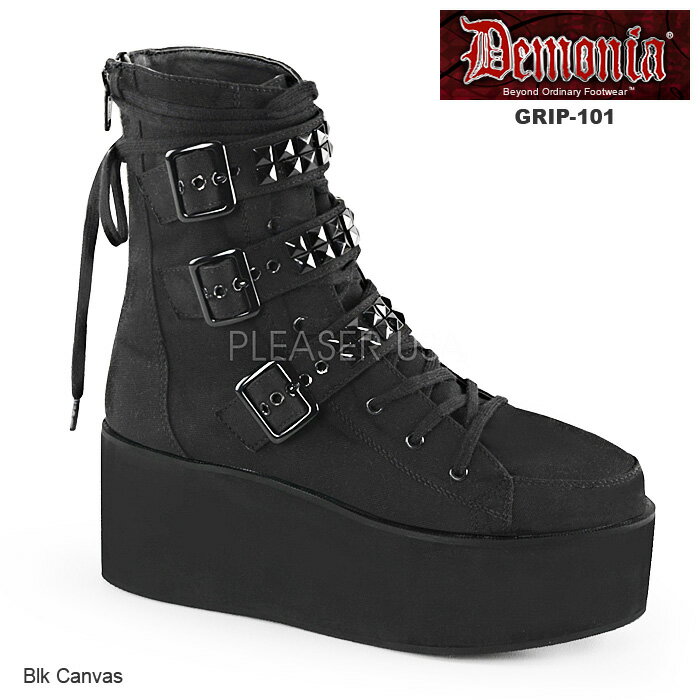 DEMONIA(デモニア) レディース レースアップ&ストラップブーツ バックジッパー付 GRIP-101 キャンバス黒◆取り寄せ![]()