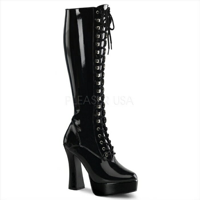 取寄せ靴 新品 コスプレ衣装靴 レースアップ編み上げひざ下丈厚底ロングブーツ サイドジッパー付き 12.5cmチャンキーヒール 黒ブラックエナメル Pleaserプリーザー 大きいサイズあり 行事 式 女装 男装 パーティ- LGBTファッション 02P03Dec16![]()