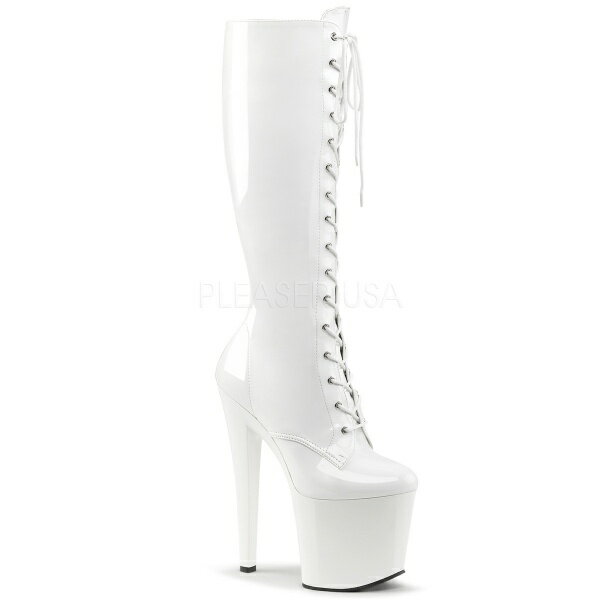 【取り寄せ】プリーザー・タブーレースアップロングブーツ/エナメルホワイト/白/美脚/大きいサイズ/フェティッシュ/ミドルブーツ/厚底/19cmヒール/女王様/衣装/個性的/女装/ハイヒール/品番:TABOO-2023![]()