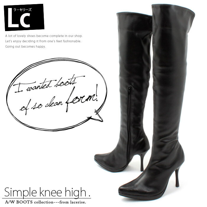 ニーハイブーツ ストレート ピンヒール ポインテッドトゥ 美脚大人のニーハイブーツ 前厚プラットフォーム ブラック黒 (ヒール9cm)レディース靴★(611 514)3004★【P】[□]![]()