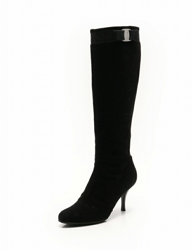 サルヴァトーレフェラガモ Salvatore Ferragamo ロングブーツ ヒール ヴァラ リボン 黒 ブラック シルバー 23cm シューズ 6 D スエード 保存袋付き レディース 【中古】【ベクトル 古着】 ブランド古着ベクトルプレミアム店![]()