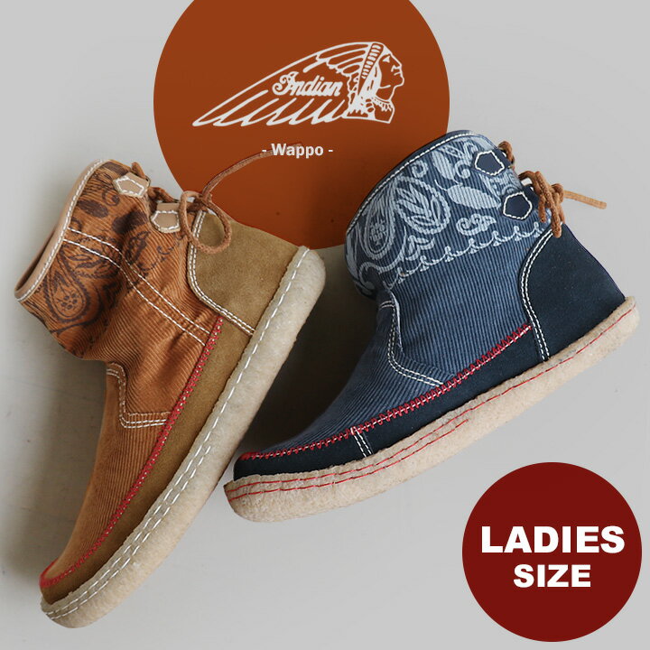 【秋くつ割】【予約販売】【送料無料】 INDIAN [インディアン] ショート ブーツ バック シューレース デザイン コーデュロイ レザー 切り替え クレープ ソール レディース 女性用 23.5cm 24.0cm![]()