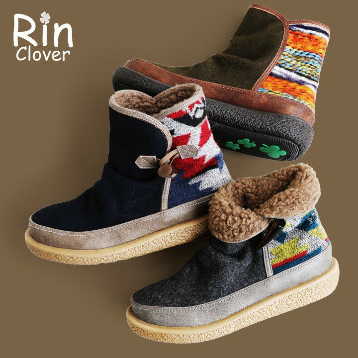 【イベント対象外】【予約販売】【送料無料】 Rin Clover [リン・クローバー] ミドル丈 ブーツ 異素材切り替え デザイン 裏ボア 切り替え クッションインソール トグルボタン付き レディース 女性用 靴 秋冬 秋![]()
