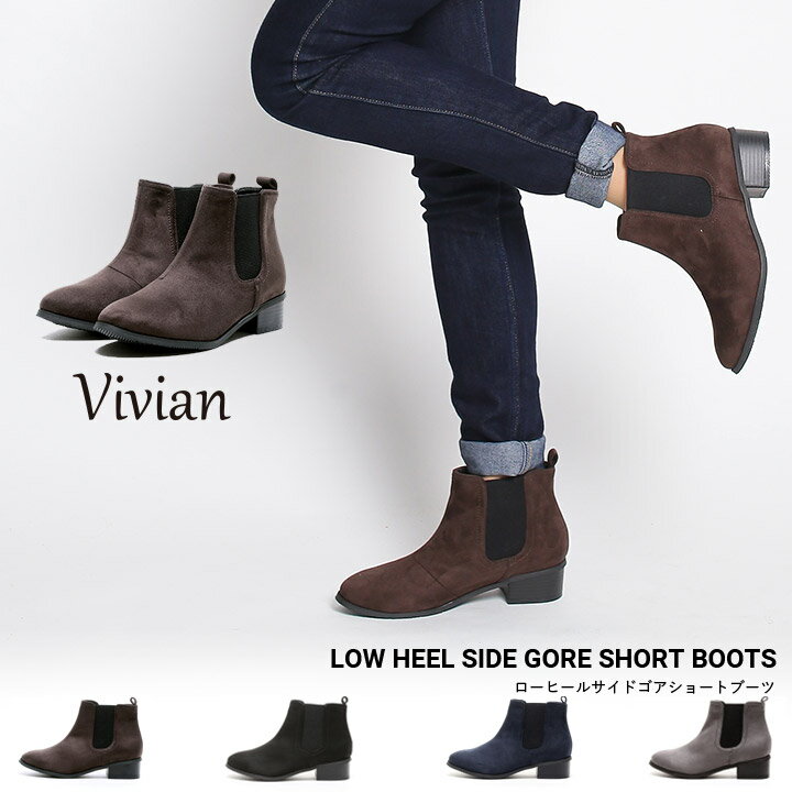 Vivian(ヴィヴィアン)ローヒール サイドゴアショートブーツ S、M、L、LL ブラック/ダークブラウン/グレー/ネイビー【レディース 靴】TSECV6090S![]()