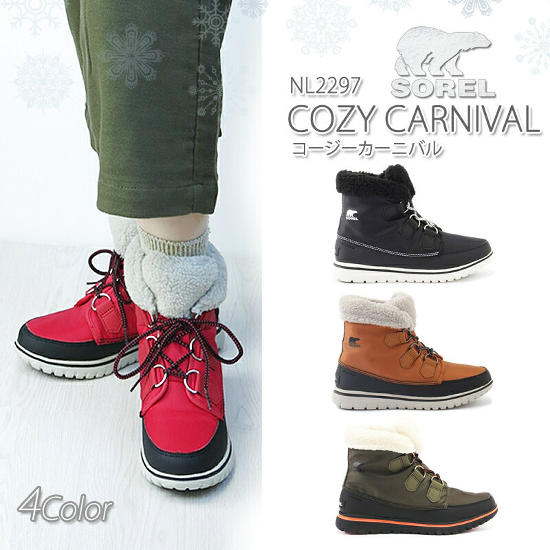 ■メーカー希望小売価格はメーカー商品タグに基づいて掲載しています着用モデル :身長 160cm/53kg 足のサイズ23.5cm 商品カラー:645)Candy Apple,Black 7(24.0) size着用 ■model’s fitting item■ ♠パンツ:【Betty Smith】BAB1158A col.14 Mサイズ ※ご覧の環境により、実物と異なる色味に見える場合がございます事を予めご了承ください。 ブランド名 SOREL (ソレル) 商品名 NL2297 Cozy Carnival コージーカーニバル スノーブーツ レディース 2017秋冬版 ウィンターブ……