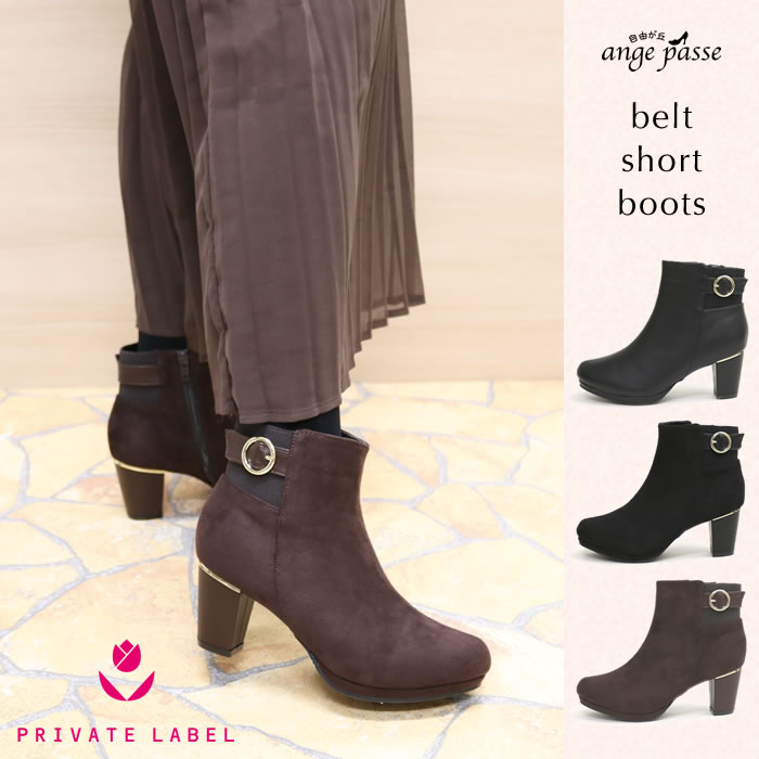 【2足選べる福袋対象】送料無料 ベルトショートブーツ Private Label プライベートレーベル レディース 秋冬 AW 靴 シューズ 痛くない 柔らかい 通販 ヒール スエード ナチュラル 自由が丘ange passe![]()