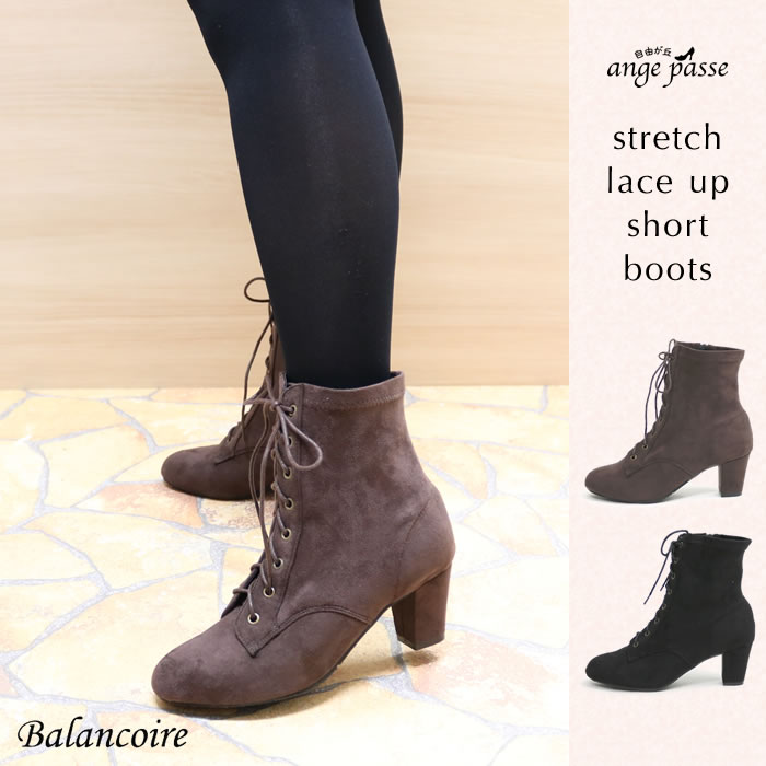 【2足選べる福袋対象】送料無料 ストレッチレースアップショートブーツ Balancoire ブランコワール レディース 靴 シューズ 秋冬 AW 通販 ヒール 編み上げ 大きいサイズ ナチュラル 自由が丘ange passe![]()