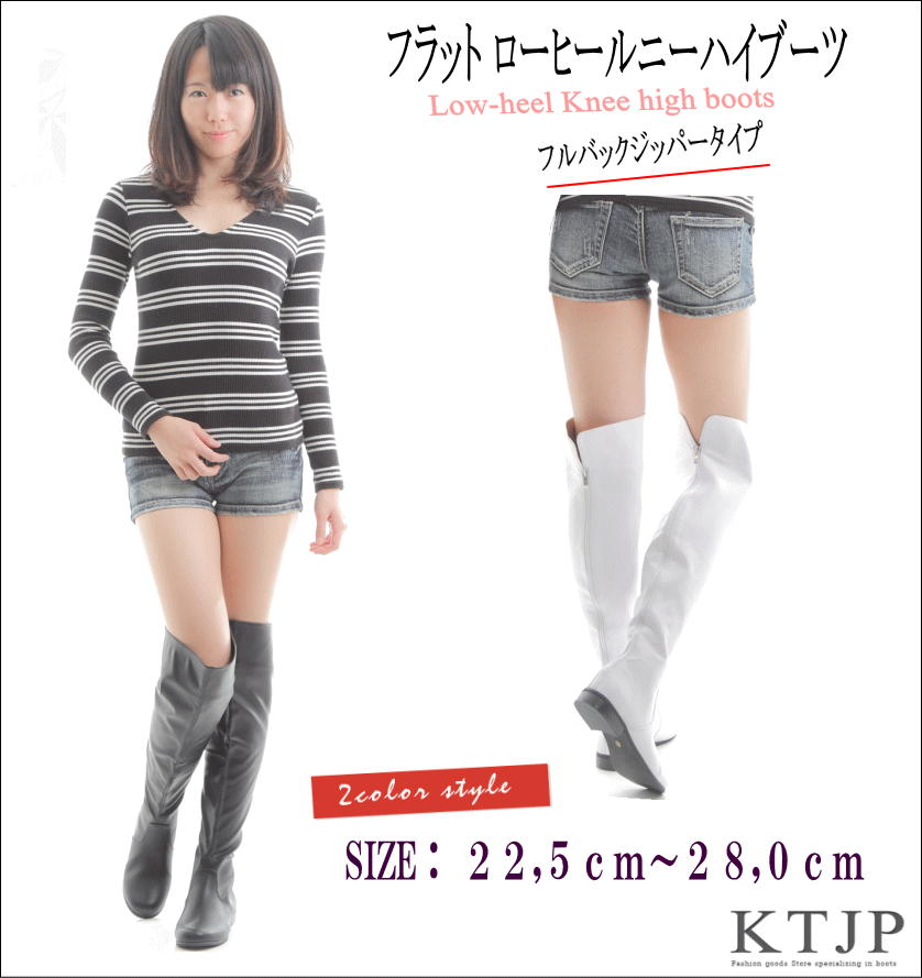 ●フラット ローヒール ニーハイブーツ 黒・白(ブラック・ホワイト)● 【安定ヒール】【フラットヒール】【どっかんブーツ】【ゆったり】【サイハイブーツ】【 大きいサイズ 】【 おおきいサイズ 】 【ぺたんこブーツ】【 ストレッチ 】【 コスプレ 】【イベント】