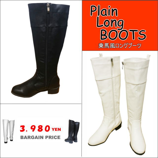●シンプルデザインのフラットヒールブーツ≪ブラック≫≪ホワイト≫ 検索: 乗馬風ブーツ ジョッキーブーツ フラット ローヒール 白 黒 劇団衣装 コスプレ 衣装 素材 大きいサイズ クイーンサイズ フラット プレーン 【RCP】![]()