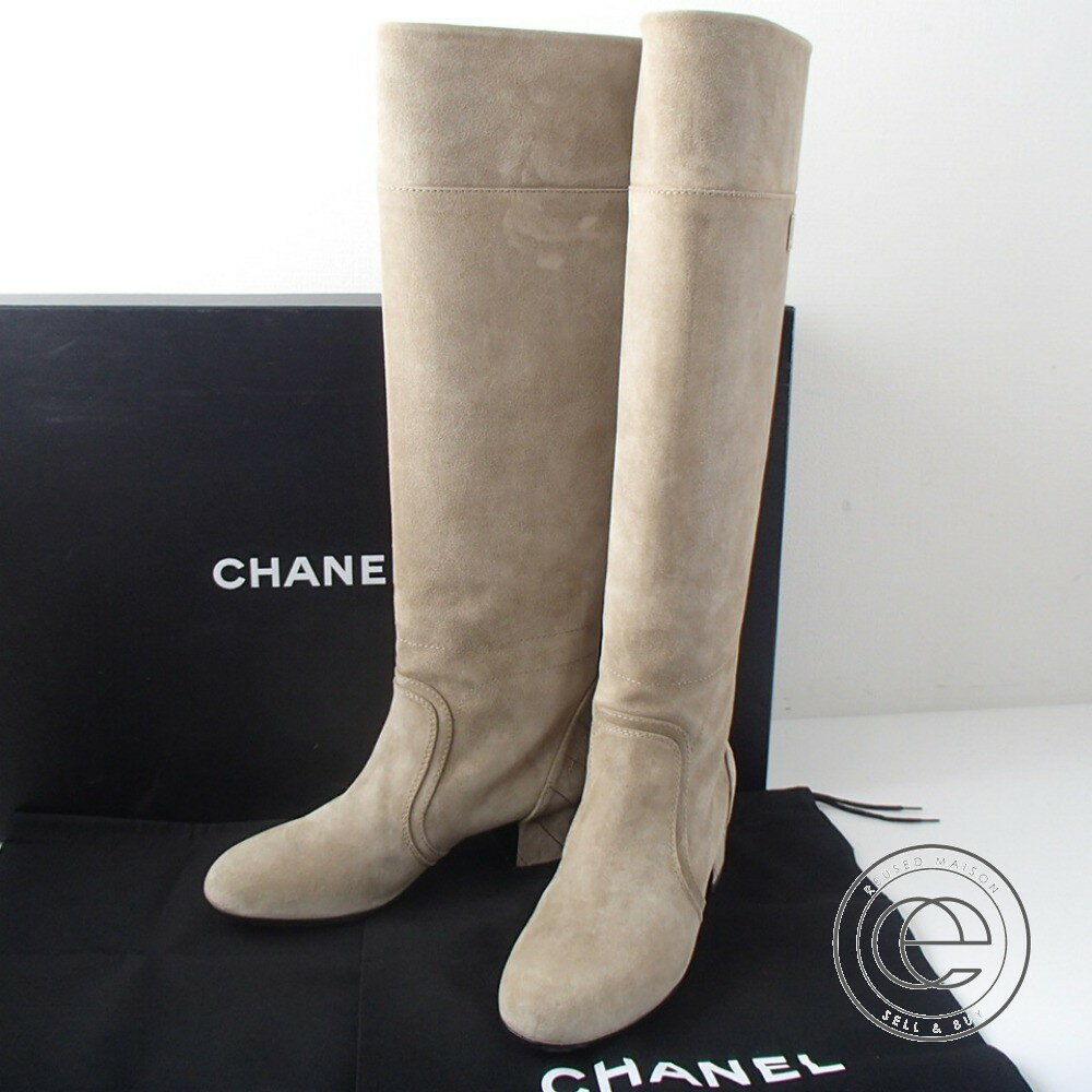 CHANEL【シャネル】 12A G28484X05897 ベージュ スエード マトラッセ バックジップ ロングブーツ37C シューズ レディース 【中古】![]()