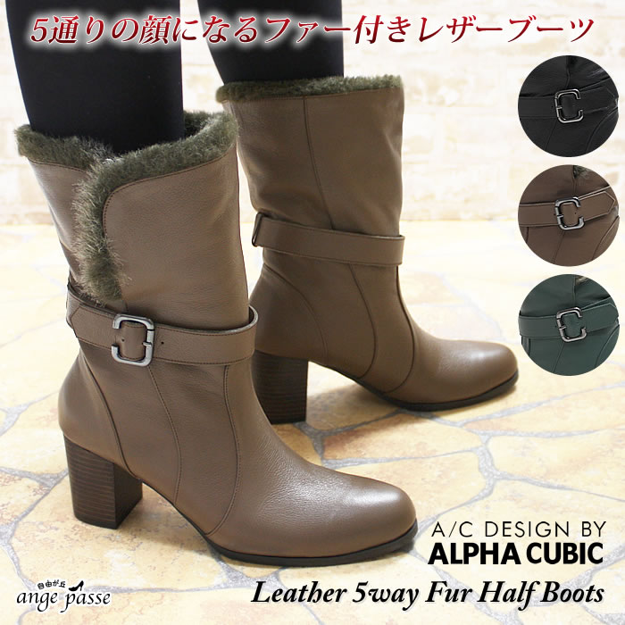 【期間限定お買い得】アルファキュービックレザー5wayファーハーフブーツ!筒を折りかえしベルトの位置を変えて多種多様の使い方ができる。サイドのスリットでさらに使いやすくなりました。【ALPHA CUBIC】【自由が丘ange passe】10P02Mar14![]()
