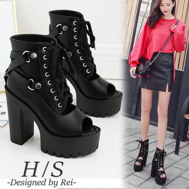 6月下旬発送 ブーツ ブーツサンダル ショートブーツ サンダル オープントゥ レースアップ レディース チャンキーヒール 太ヒール rutsu192![]()