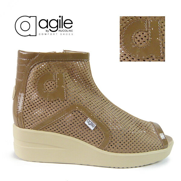 ルコライン 靴 アージレ agile by RUCO LINE CHAMBERS ULTRA メッシュ ショートブーツオープントゥ ファスナー付き メッシュ×エナメル調 agile-322BE ベージュ ブーツ 春夏用 新作/定番品 アージレ バイ ルコライン 取扱店![]()