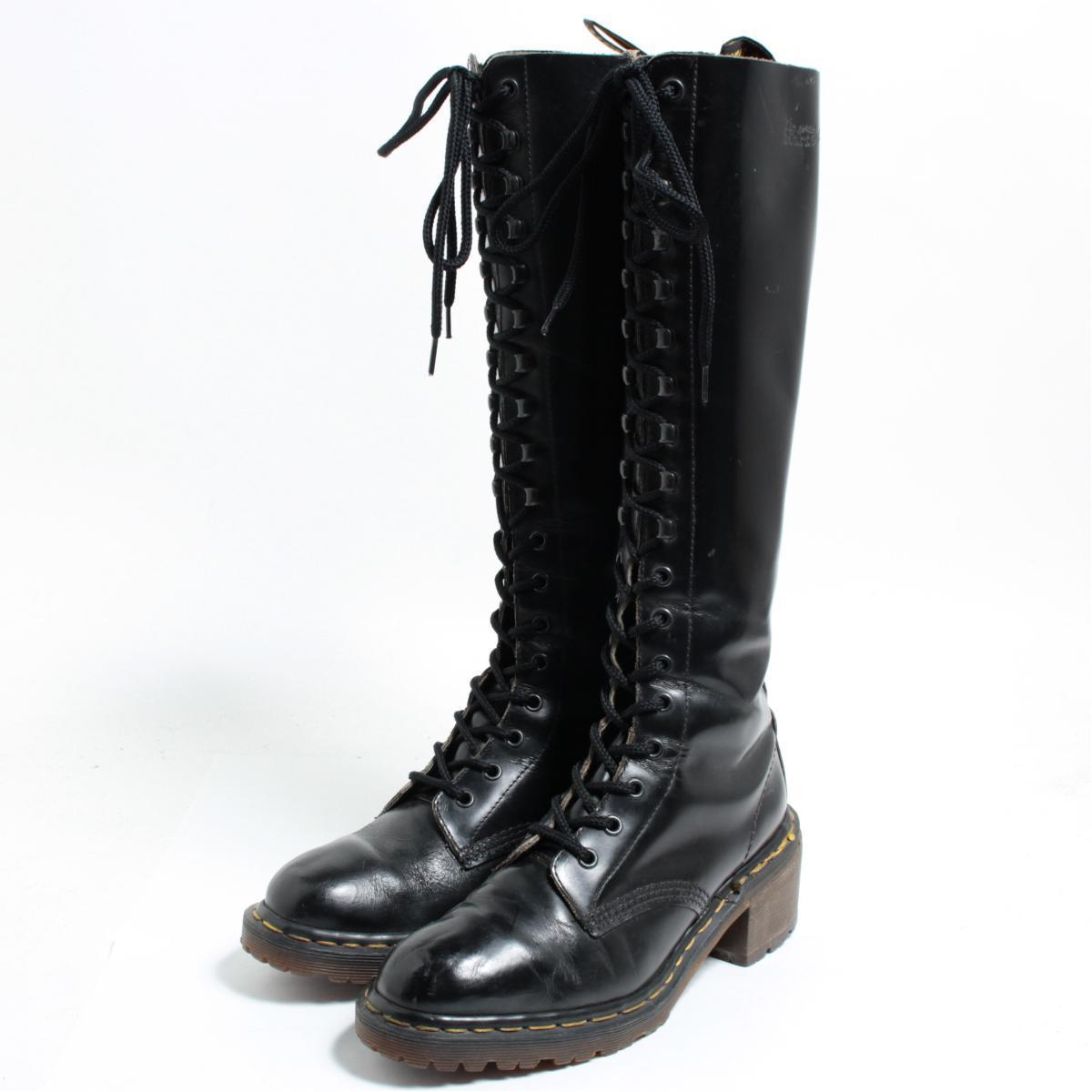 商品詳細ブランド・Dr.Martens・ドクターマーチン・特徴・ハイヒール・モデル/形状・18ホールブーツ・素材・本革レザー 牛革・色・ブラック系 黒色・柄生産国・英国製・年代サイズ・レディース23.5cm・表記サイズ・ブーツ高さ:44cm・ヒール高さ:5.8cm・アウトソール:28cm・履き口外周:36cm・コンディション・B・カテゴリ・シューズ・ブーツ・レースアップブーツ・商品番号・bol6553・取扱店・ネットショップ・スタッフコメント・ドクターマーチン(Dr Martins)は、ドイツの医師のクラウス・マーチンが開発した、エアークッションソールが特徴のシューズブランド。・Dr.Mart……
