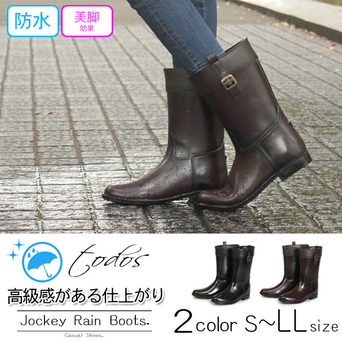 ジョッキーミドルレインブーツTODOS(トドス) ブラック 他全2色(TO-209)レディース(女性用)長靴 ジョッキーブーツ ミドルブーツ ハーフ丈 美脚効果 防水 雨 秋冬 レインシューズ カジュアル シューズ 靴 送料無料![]()