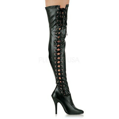 PLEASER【取り寄せ】プリーザー・品番:SEDUCE-3050/サイドレースサイハイブーツ/合皮ブラック/黒![]()