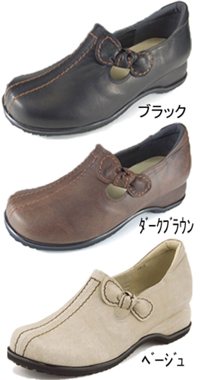 サイドのリボンがかわいいシンプルなスリッポンタイプのレディースコンフォートシューズです。 柔らかな素材の風合いも心地よく、まるいシルエットが女性らしいかわいさをだしています。長めのスカートにあわせてナチュラルに履くと、それだけで楽しくなりそうですね! 軽くてやわらかく、足入れは4Eでゆったりと履いていただけます。 素 材 :天然牛革 ソール :硬質スポンジ ヒール高:約3.5cm 製造国 :日本 ……