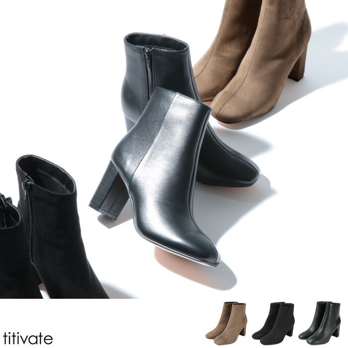 チャンキーヒールスクエアトゥショートブーツ/しっかりと安定感のあるヒールで歩きやすい/シューズ/レディース/ブーツ/ショートブーツ/チャンキーヒール/スクエアトゥ![]()