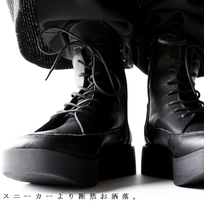 日本製。大人気厚底ブーツがレースアップに。本革スクエア厚底ブーツ・発送は12/21〜。##×メール便不可!![]()