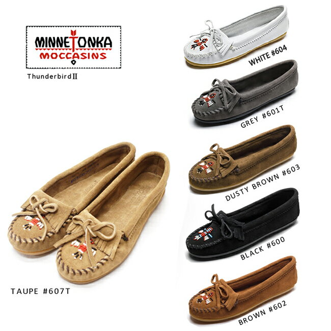 ギフト対応送料・発送日などよくある質問はこちらMINNETONKA ミネトンカ THUNDERBIRD2 サイズ サイズ 6 (22.5〜23.0cm) 6.5 (23.5〜24.0cm) 7 (23.5〜24.0cm) 7.5 (24.0〜24.5cm) 8 (24.5〜25.0cm) 全長 約25.5cm 約26cm 約26.5cm 約27cm 約27.5cm ヒール高さ 約1.5cm 約1.5cm 約1.5cm 約1.5cm 約1.5cm 素材 表:スエード:ソール:ラバー/604のみsmooth leather カラー BLACK #600 / BROWN #602 /TAUPE #6……