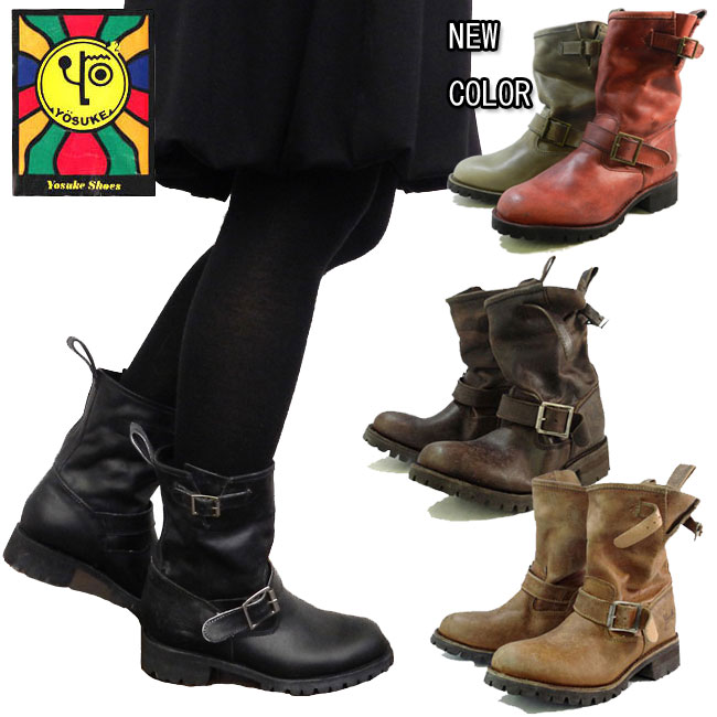 靴 レディース YOSUKE U.S.A ヨースケ レザー エンジニアブーツ 本革 ショート