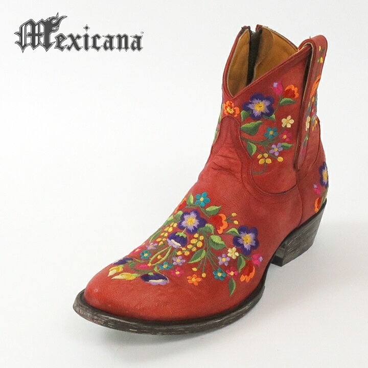 ★Mexicanaメキシカーナレディース★ヴィンテージ加工花柄刺繍サイドジップ本革レザーショートウエスタンブーツ靴【日本サイズ24.5】【レッド系】mex-l-k-45-907![]()