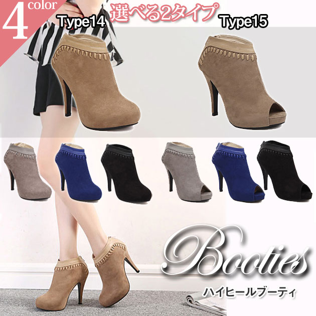 目玉商品!【宅急便/メール便不可】【即納】選べる2TYPE♪バックジップ オープントゥ ハイヒール ブーティ【xl998】ブーティ